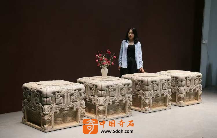 整体雕刻精美,四面出兽头并饰以不同瑞兽寓意吉祥,宜庭院会所摆放