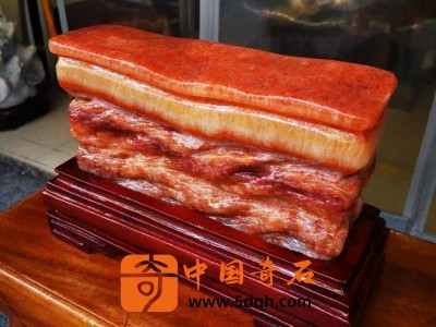 猪肉石系天然石种,多数属沉积岩,硅质岩或变质岩,是在地质运动过程中与其他矿物质接触色化而成。肉石珍贵在有皮。世间红白相间的石头比较多,但要有皮有痩有肥才算肉石中的上品。
