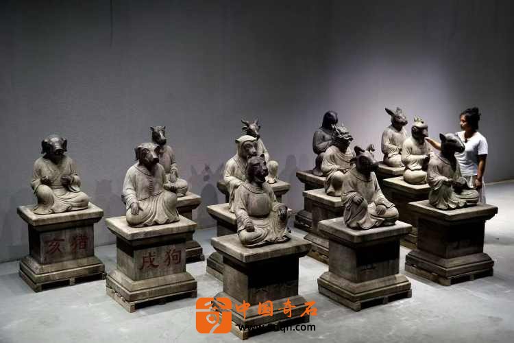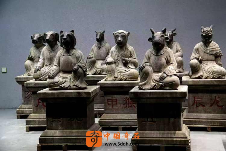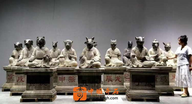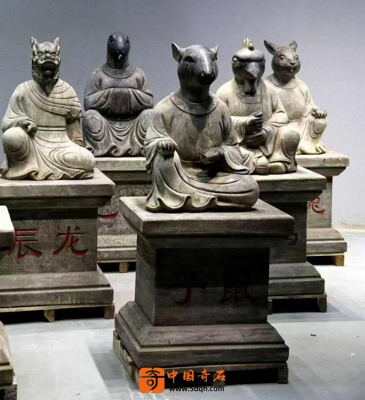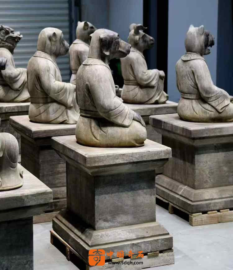 清代 青石石雕文化重器~十二生肖塑像此套生肖或参禅打坐,或手呈佛姿,应为大型庙宇,皇家园林之旧藏,每一个都雕刻的唯妙唯俏生动形象,视觉效果十分震撼,整体品相完好,实为难得。