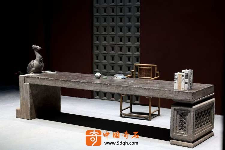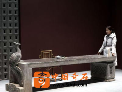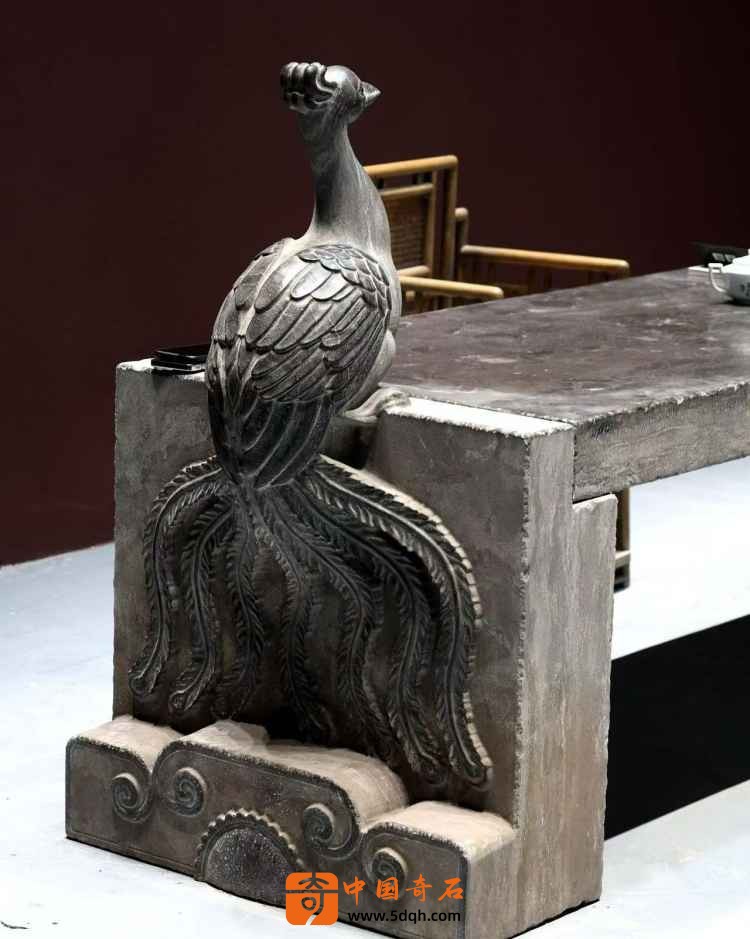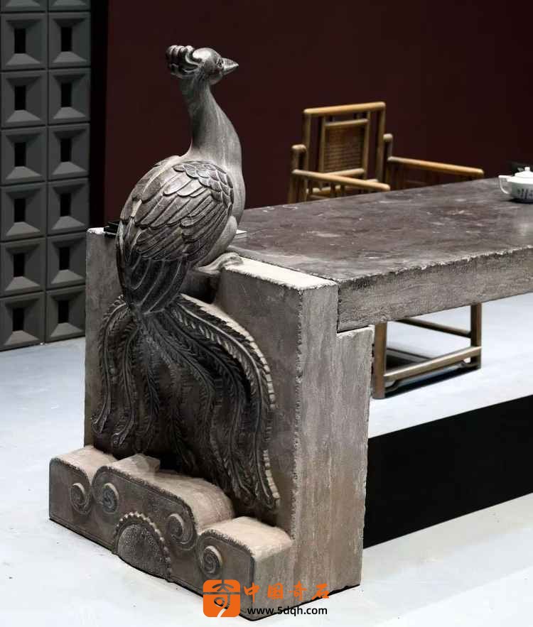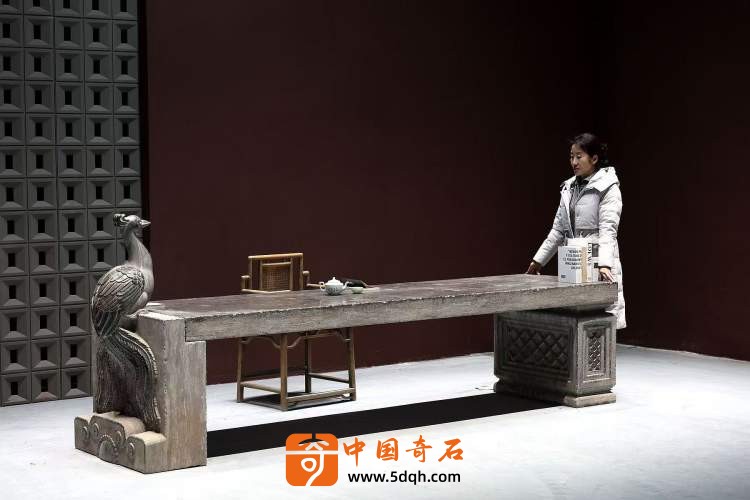 极致的奢华 · 青石凤栖长石案,此案造型大气磅礴,一侧雕刻凤凰开屏,寓意吉祥,桌面平整光滑,整体品相完好,置于庭院会所非常大气……