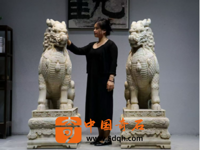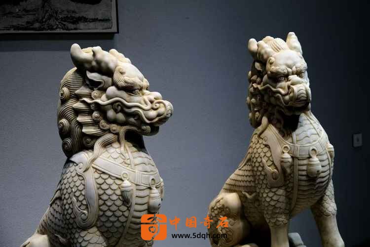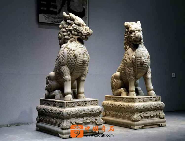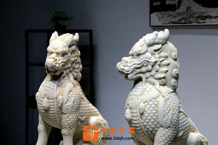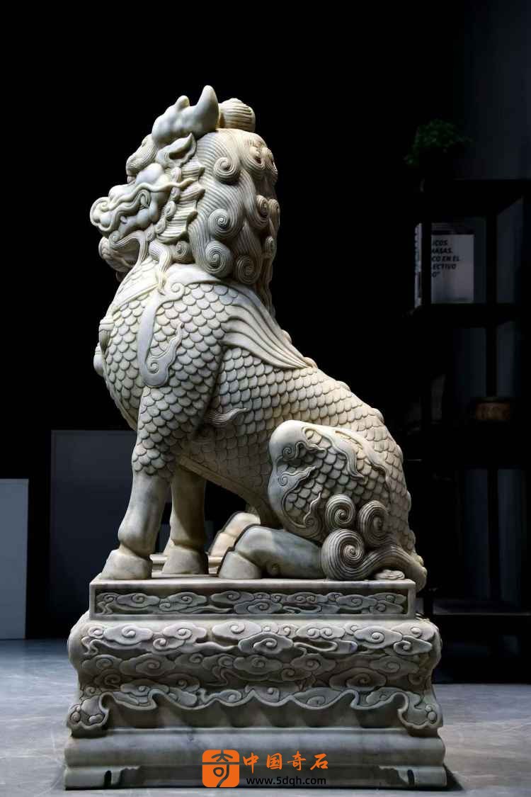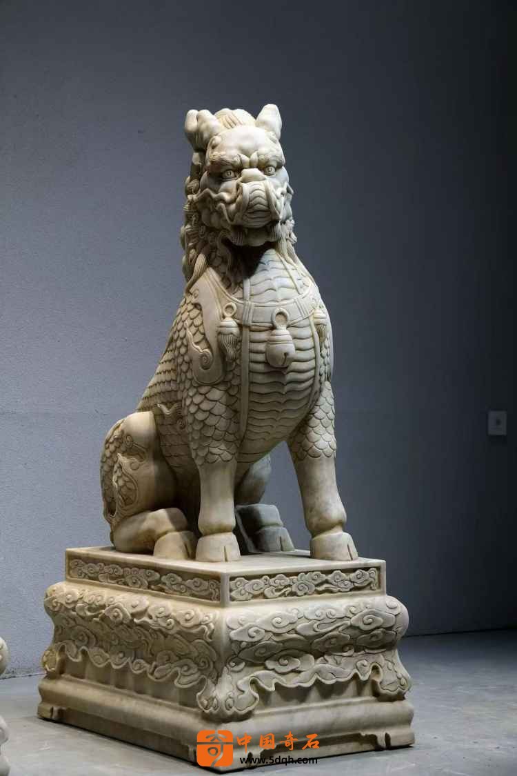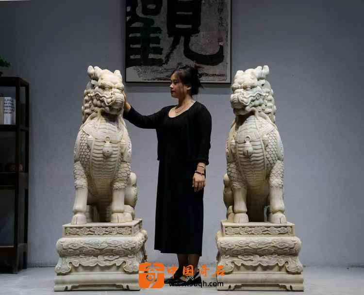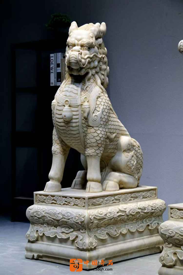 汉白玉 麒麟迎门摆件 迎客麒麟,此麒麟整体品相完好 皮壳风化自然老气 鳞片层次分明排列 上下分体式 麒麟蹲坐于祥云座之上威武霸气 现可置于庭院会所门口摆设 有招财纳福之寓意。