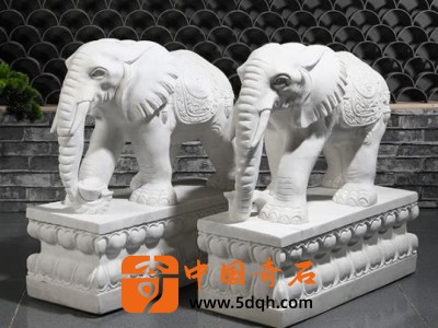 石雕大象一对汉白玉青石头中式家用看门装饰别墅公司门口摆件 汉白玉 40*40*18底座高12一对