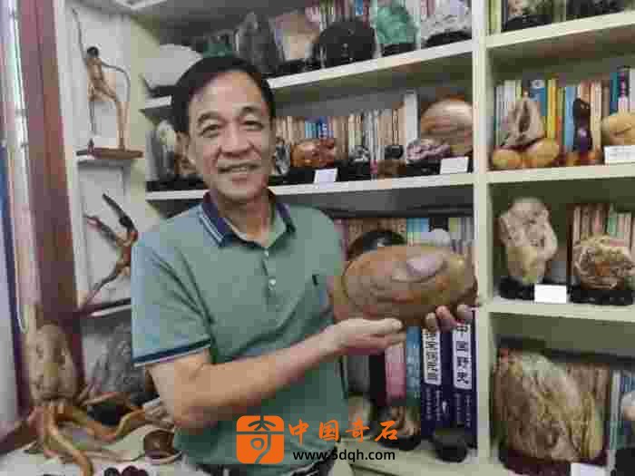陈冰是当地有名的奇石收藏家,他收藏的大部分奇石都取于自然界。退休后,他走遍大江南北,拾得一块块造型各异的石头,为奇石赋诗、题词,以奇石作画,每一块石头在他手中都有了特别的灵魂。
