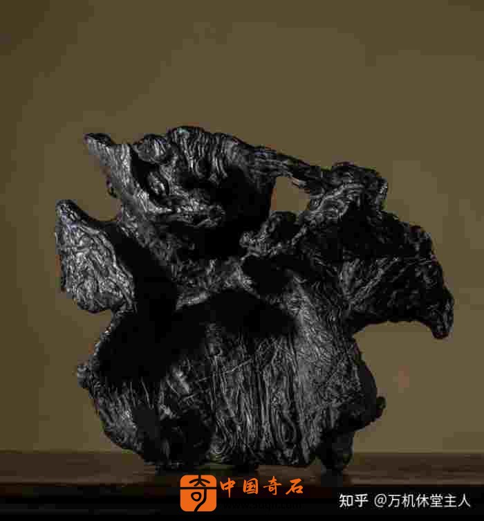 赏石肌色黑,观之如墨,包浆油润。造型奇特,苍岩嶙峋,纹理优美,气韵苍古,韵味十足.