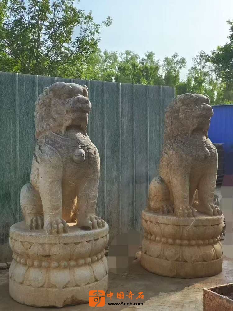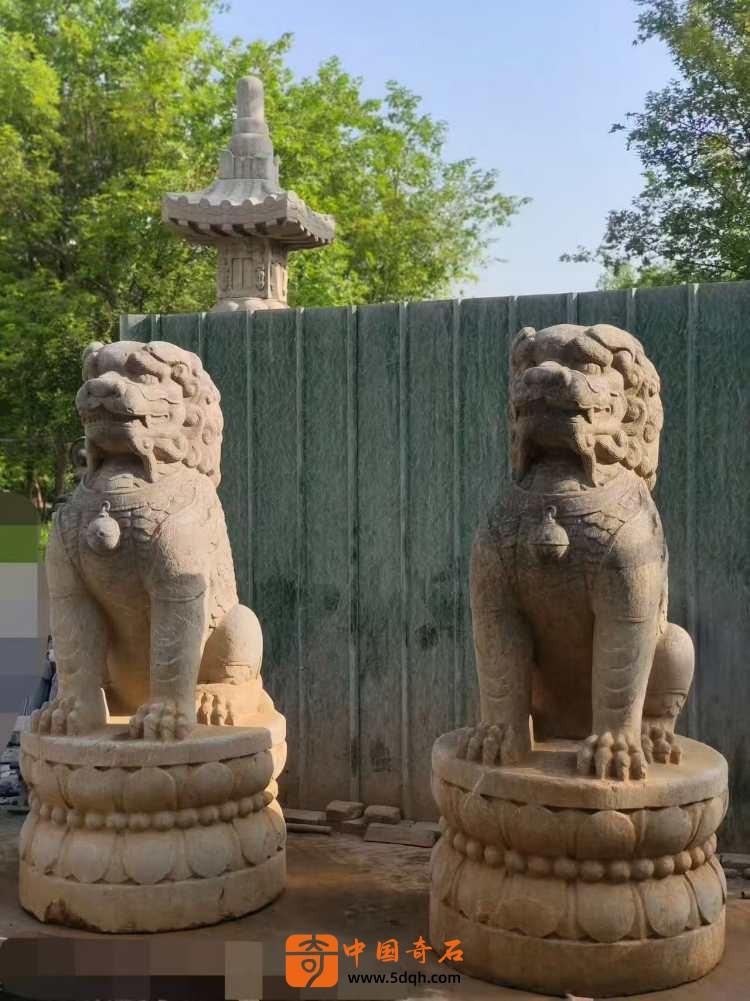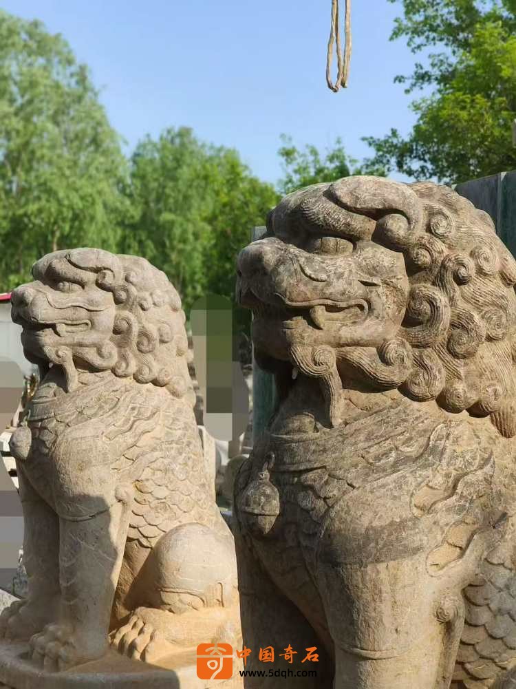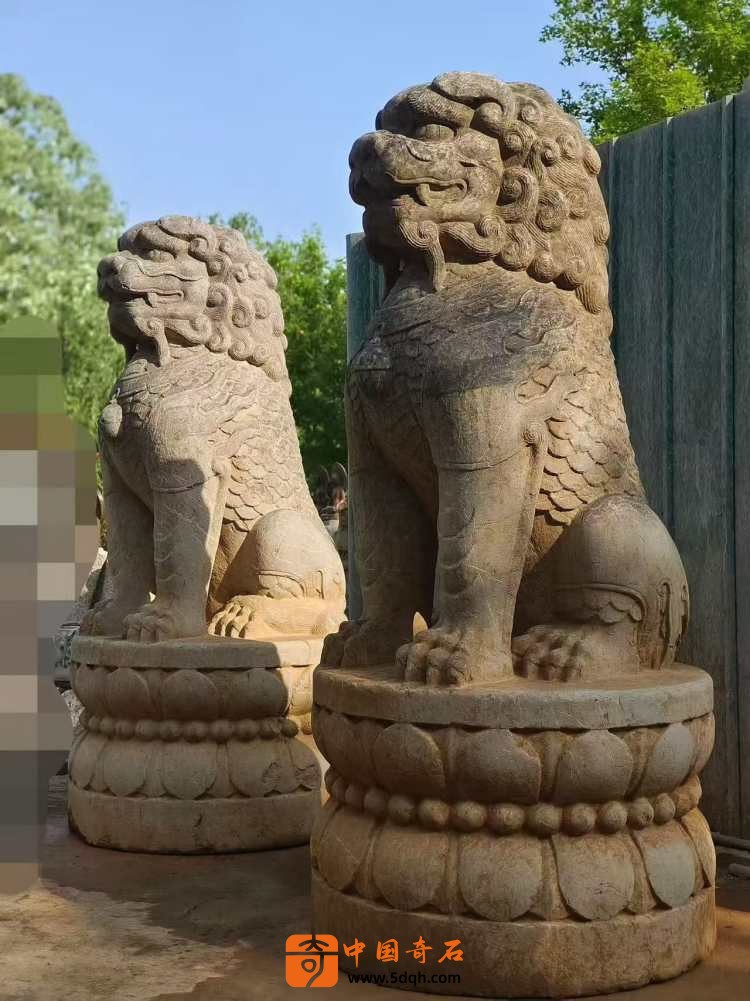 元代青石石雕狮子一对