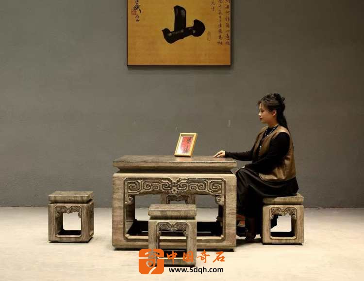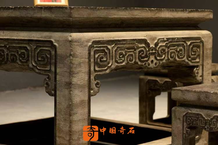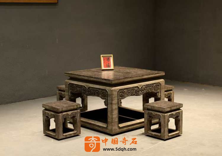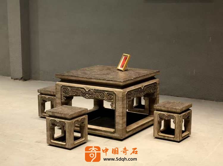 这套石桌以传统工艺打造,桌面简洁,桌腿与凳身浮雕纹饰精美,古雅韵味十足。